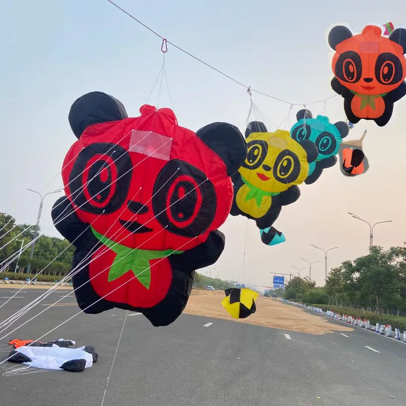 Le design est inspiré de la culture chinoise, mais pas question ici de faire compliqué : ce cerf-volant est simple, pratique et fun. Le panda, symbole universel de gentillesse et de douceur, rappelle ces valeurs qui font du vol un moment léger et apaisant.