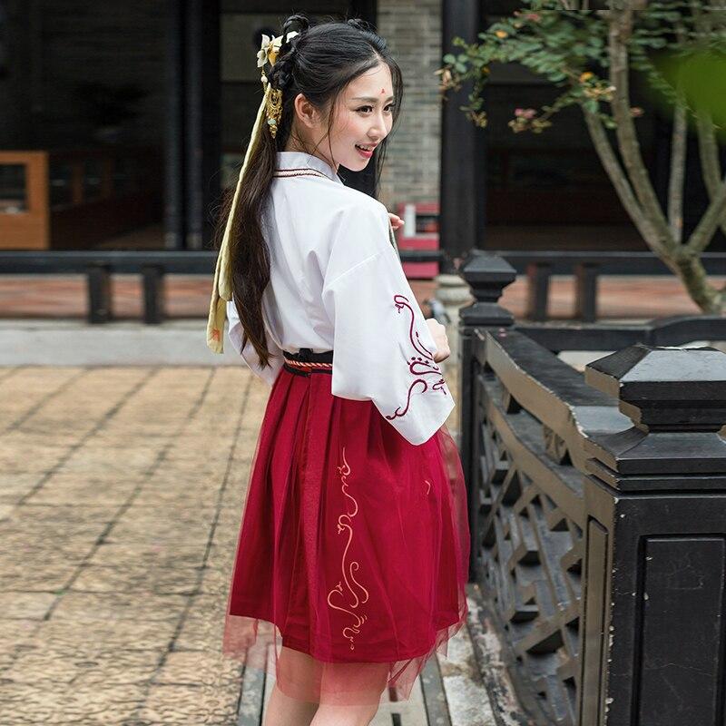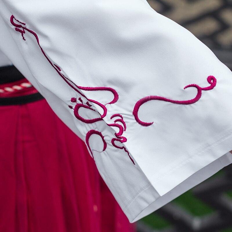 Cette tenue est parfaite pour créer des contrastes selon vos envies : un sac moderne, une veste légère ou même une cascade de bijoux. Le Hanfu Court Rouge et Blanc est assez polyvalent pour suivre le rythme de vos folies stylistiques.