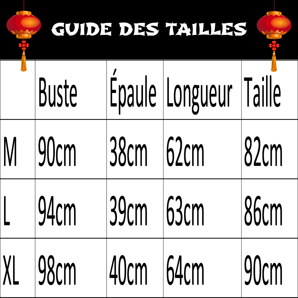 Mindre Avez-vous apprécié ce produit ? Si oui, nous sommes ravis de l'apprendre ! D'ailleurs, nous vous invitons à découvrir notre « Veste Chinoise Femme Soie », un produit spécialement sélectionné pour vous, qui vous plaira à coup sûr en raison de son esthétique remarquable et de sa qualité exceptionnelle.