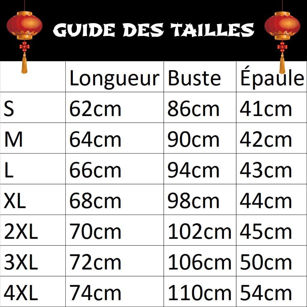 Comment bien choisir sa taille pour le T-shirt Chinois Dragon Bleu ?