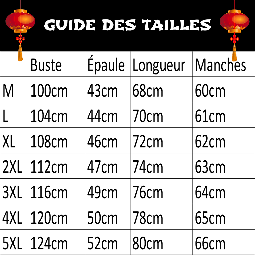 Avec la bonne taille, votre Veste Chinoise Homme Lotus deviendra rapidement votre alliée préférée.