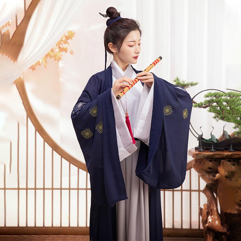 Et vous savez quoi ? Le bleu marine de ce Hanfu apporte une élégance naturelle qui s’adapte aussi bien à une journée décontractée qu’à une occasion plus formelle. Sans parler de la petite broderie fleurie, qui fait toute la différence sans vous transformer en œuvre d’art ambulante.