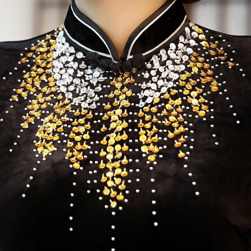 Dès le premier regard, elle attire l’attention avec son style traditionnel chinois revisité, ses détails scintillants, et sa coupe qui flatte la silhouette. Enfilez-la, et vous comprendrez vite que ce n’est pas qu’un vêtement, c’est une invitation à briller.