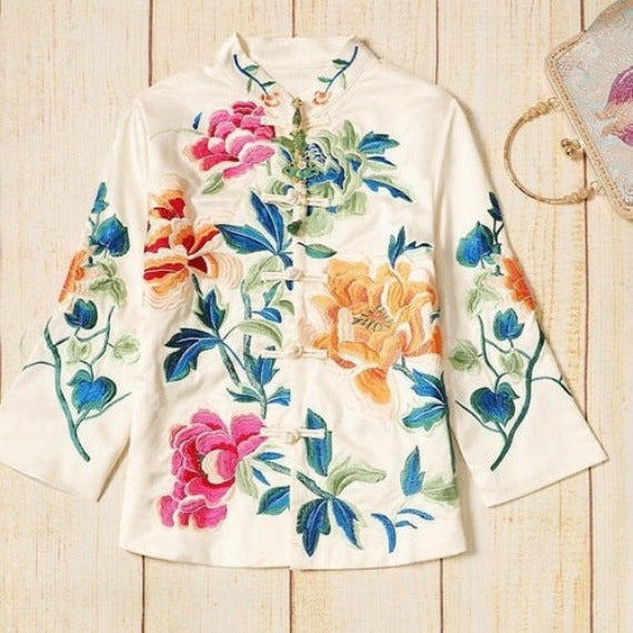Vous imaginez la scène ? Une veste qui se marie aussi bien avec une tenue décontractée pour le week-end qu’avec un pantalon plus travaillé pour le bureau. Et ses magnifiques fleurs brodées, plutôt que d’en faire trop, ajoutent ce qu’il faut de pep’s et de féminité.