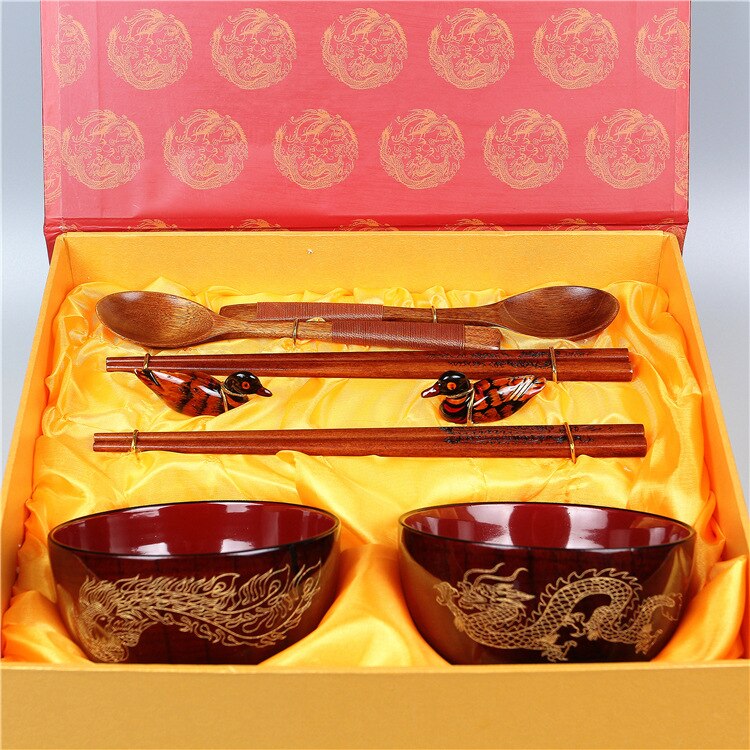 - Deux bols finement travaillés en bois naturel, sublimés par un décor de dragon