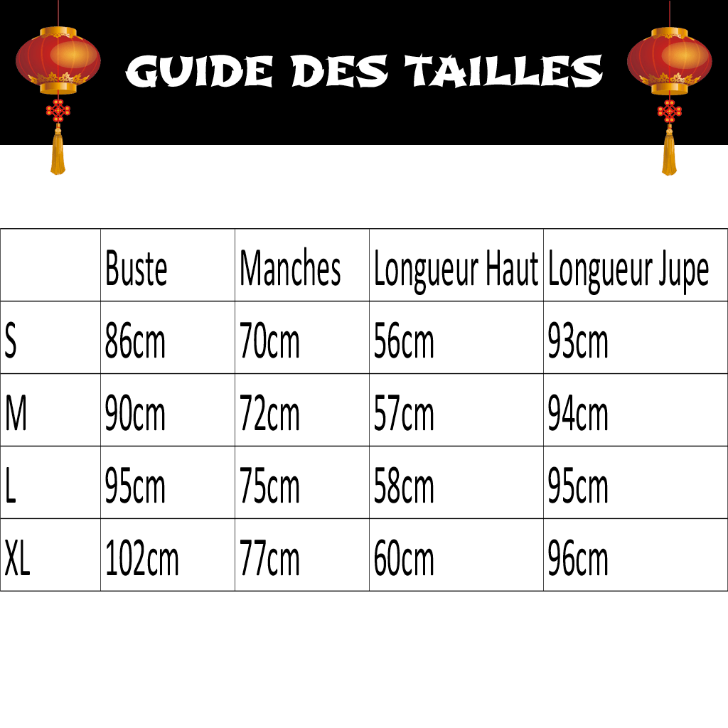 Un vêtement aussi fluide, c’est important que ça tombe parfaitement. Pour éviter toute déception, consultez soigneusement notre guide des tailles. Un Hanfu trop grand ou trop petit peut vite faire perdre toute son aura.